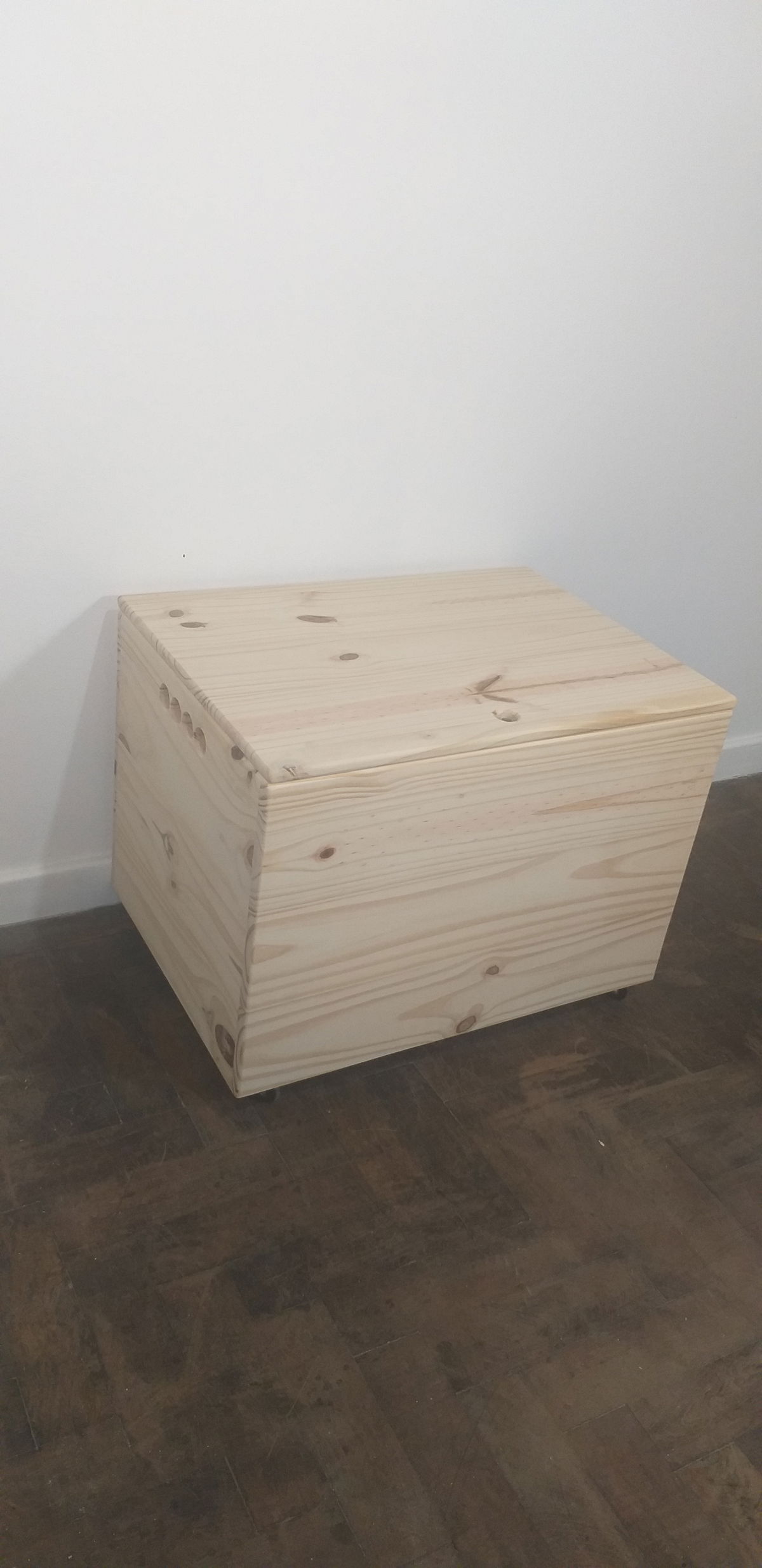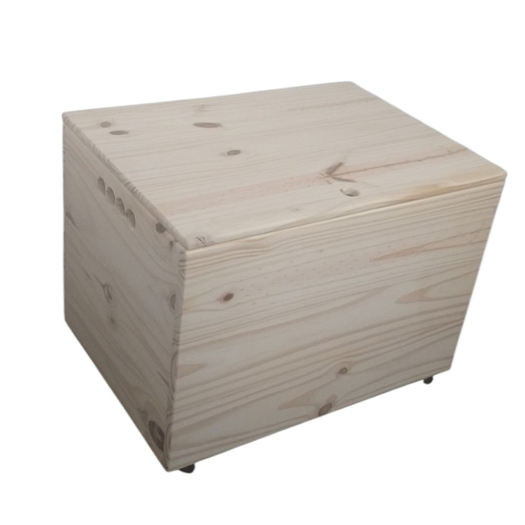 60 cm de largo, 40 cm de alto y 40 cm de ancho CON TAPA Y RUEDITAS
